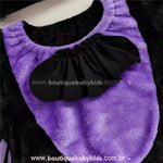 Design Temático de Morceguinho: Asinhas laterais costuradas na manga, detalhe frontal em roxo vibrante, capuz com orelhinhas e sapatinho combinando — um visual divertido e cheio de personalidade.