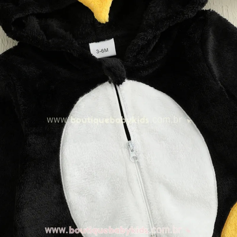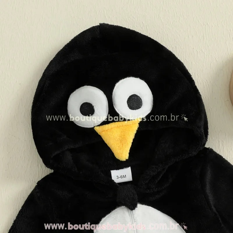 Body Bebê Fantasia Pinguim Peluciado com Capuz - Boutique Baby Kids