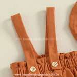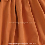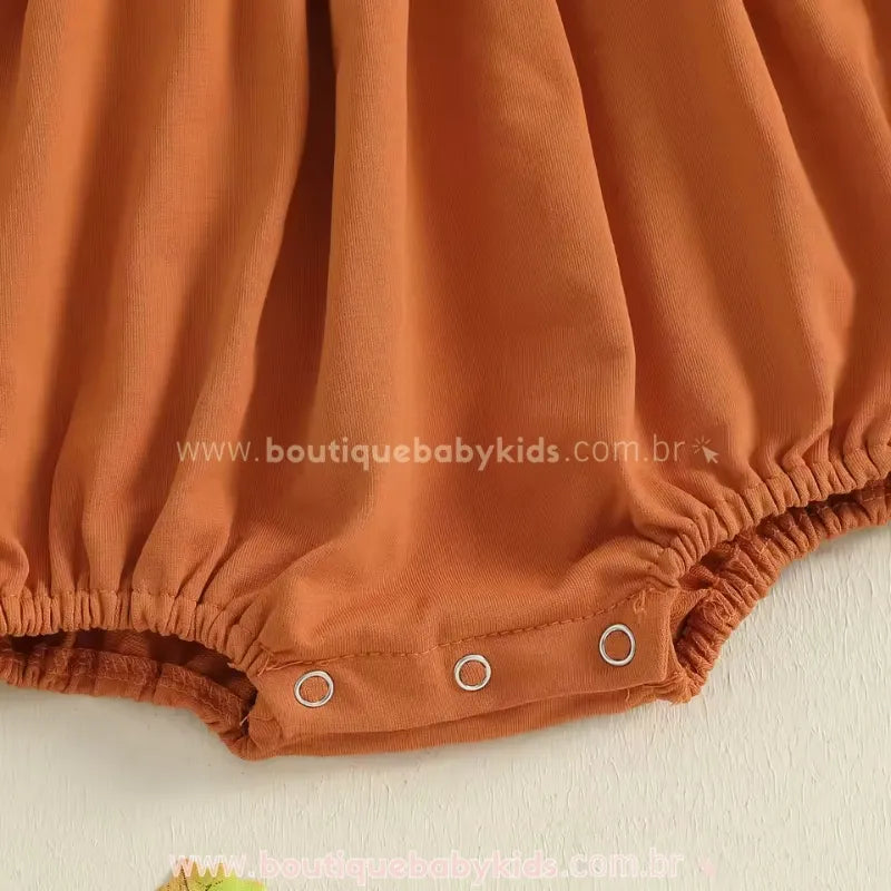 Design Temático de Abóbora: Body em tom laranja vibrante com suspensórios fixos e detalhes delicados, remetendo ao charme da clássica abóbora de Halloween.