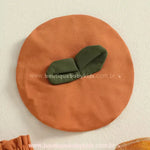Gorro Combinando: Acompanha gorro redondinho em formato de abóbora com folhinhas verdes aplicadas, completando o visual de forma criativa e divertida.