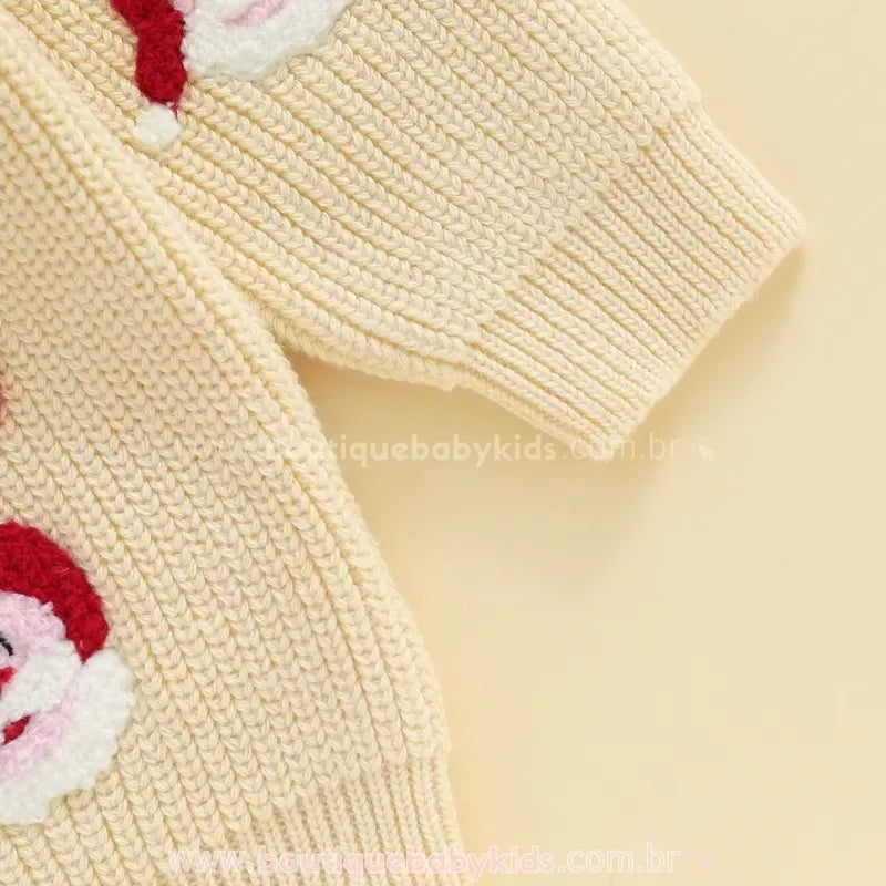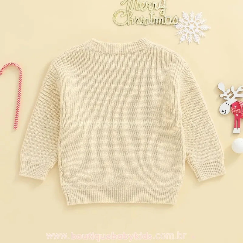 Suéter Infantil Tricot Natalino Bordado Papai Noel Merry Bege - Boutique Baby Kids