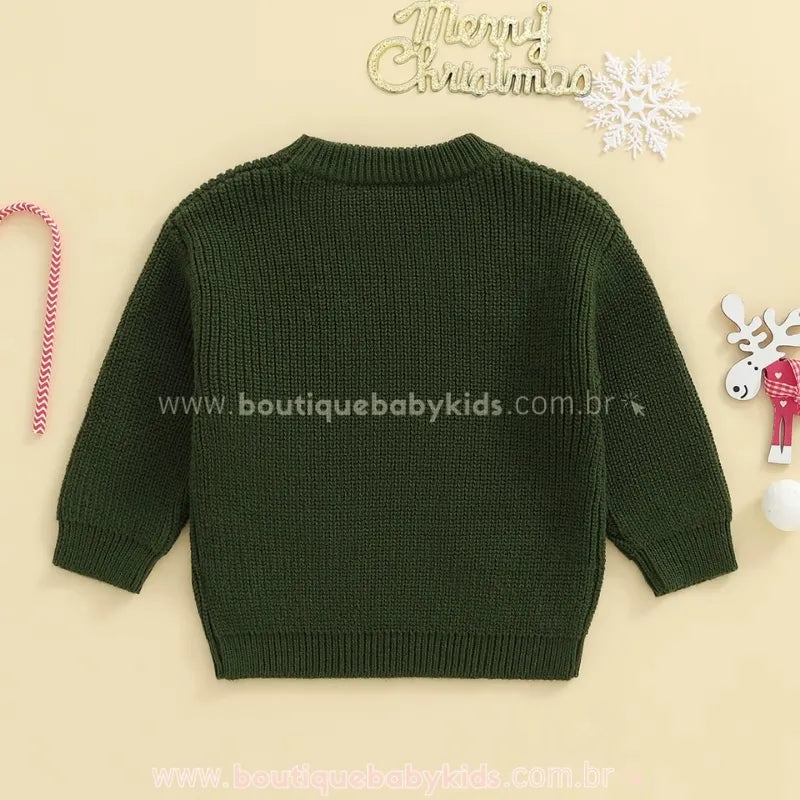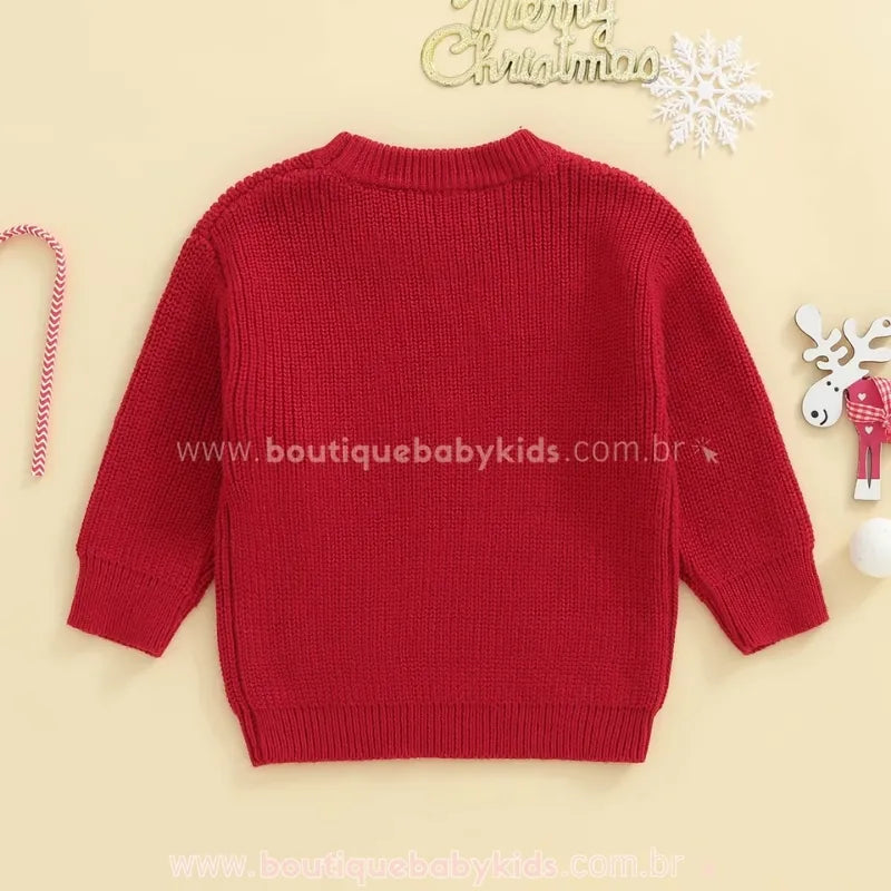 🎄O Suéter Infantil Tricot Papai Noel Merry é a peça ideal para vestir os pequenos com muito charme e conforto nas festas de fim de ano! Com um toque aconchegante e um design alegre, ele celebra a magia do Natal em grande estilo.