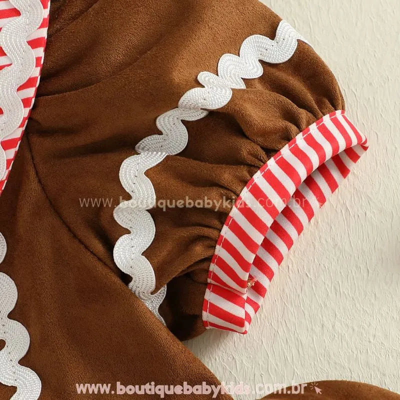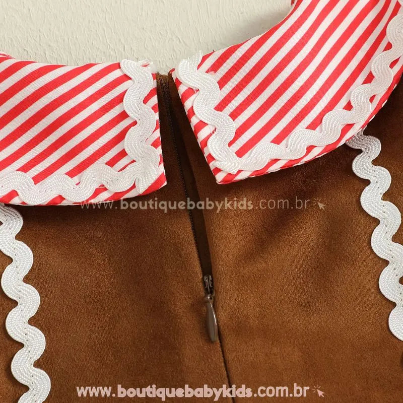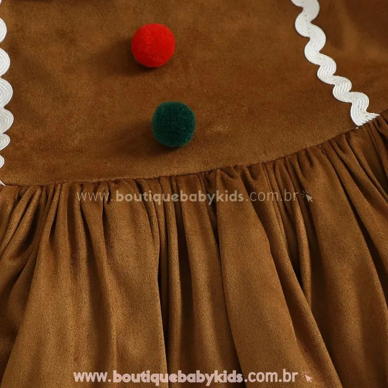 por🍪O Vestido Infantil Biscoitinho de Gengibre é pura doçura natalina! Inspirado nos clássicos biscoitos de gengibre que trazem o sabor e o encanto do Natal, ele transforma qualquer momento em uma celebração cheia de magia, alegria e muito estilo. Perfeito para festas, fotos e momentos especiais em família!