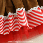 Detalhes que Encantam: A saia rodada com leve volume e acabamento em tule vermelho adiciona um charme extra e movimento encantador ao caminhar.