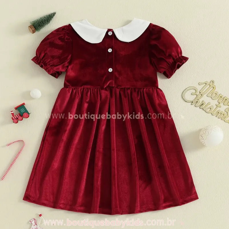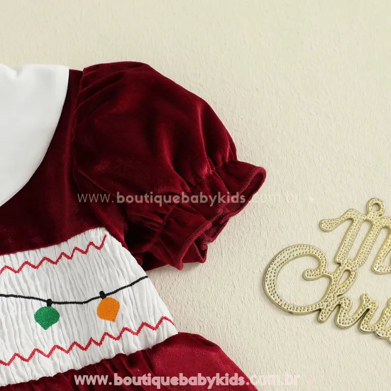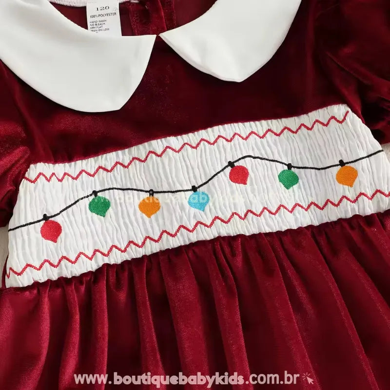 Vestido Infantil Temático Veludo Bordado Luzinhas de Natal Vermelho - Boutique Baby Kids