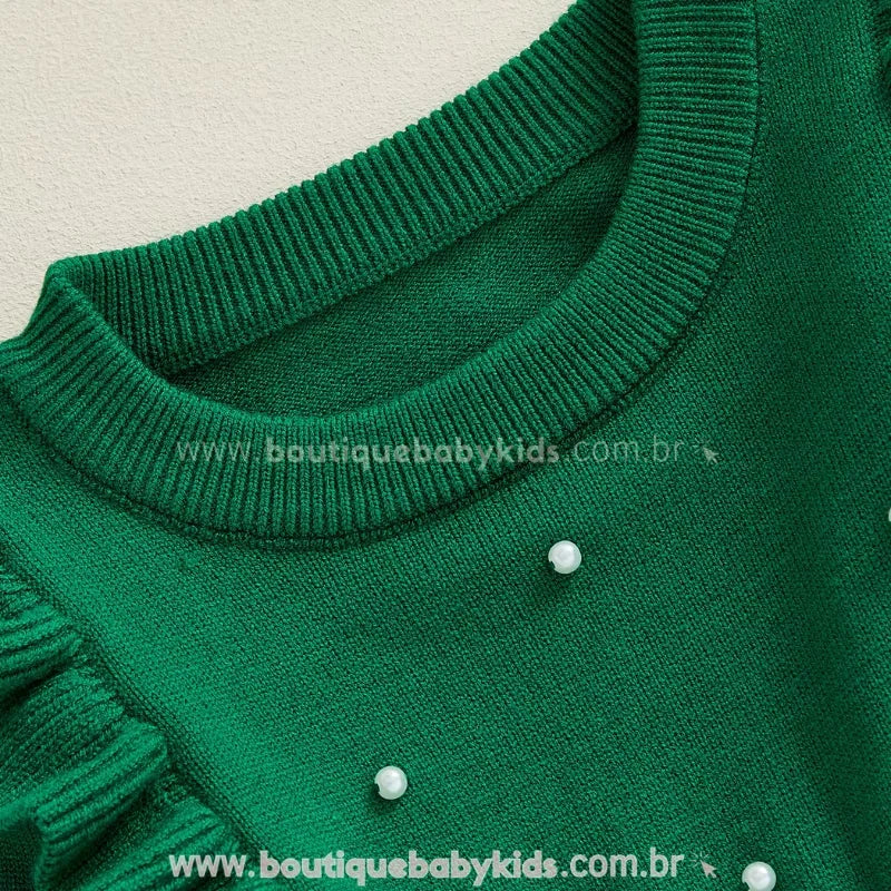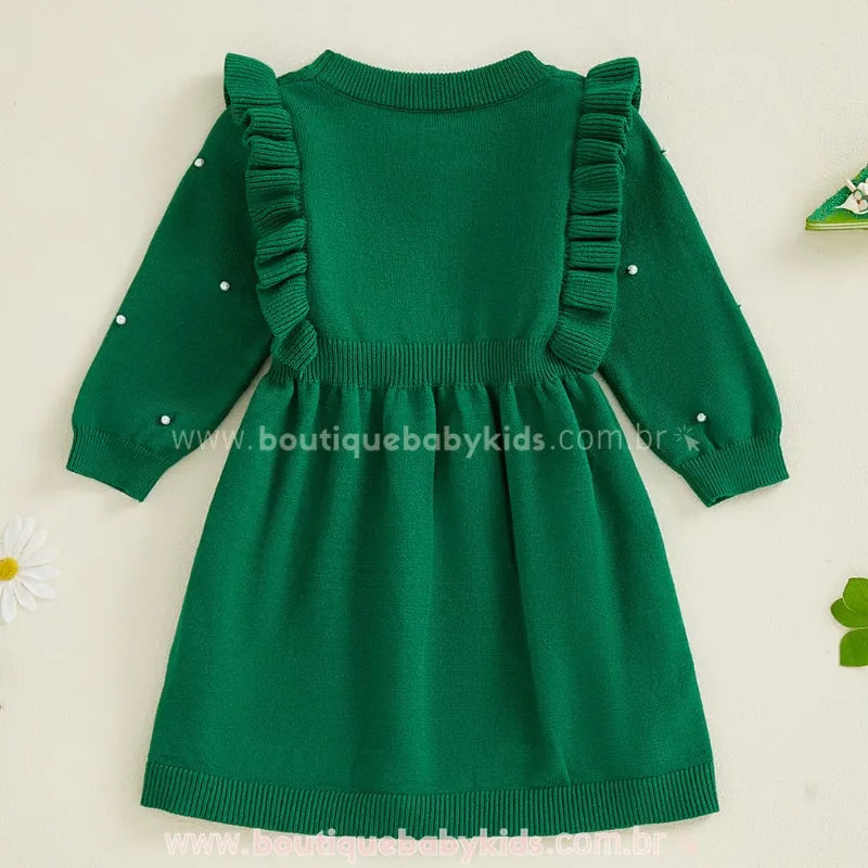 Vestido Infantil Tricot Elegância com Pérolas