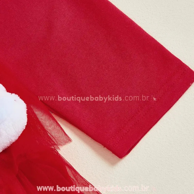 Vestido Infantil Tule 'Santa Baby' com Apliques de Natal Vermelho - Boutique Baby Kids