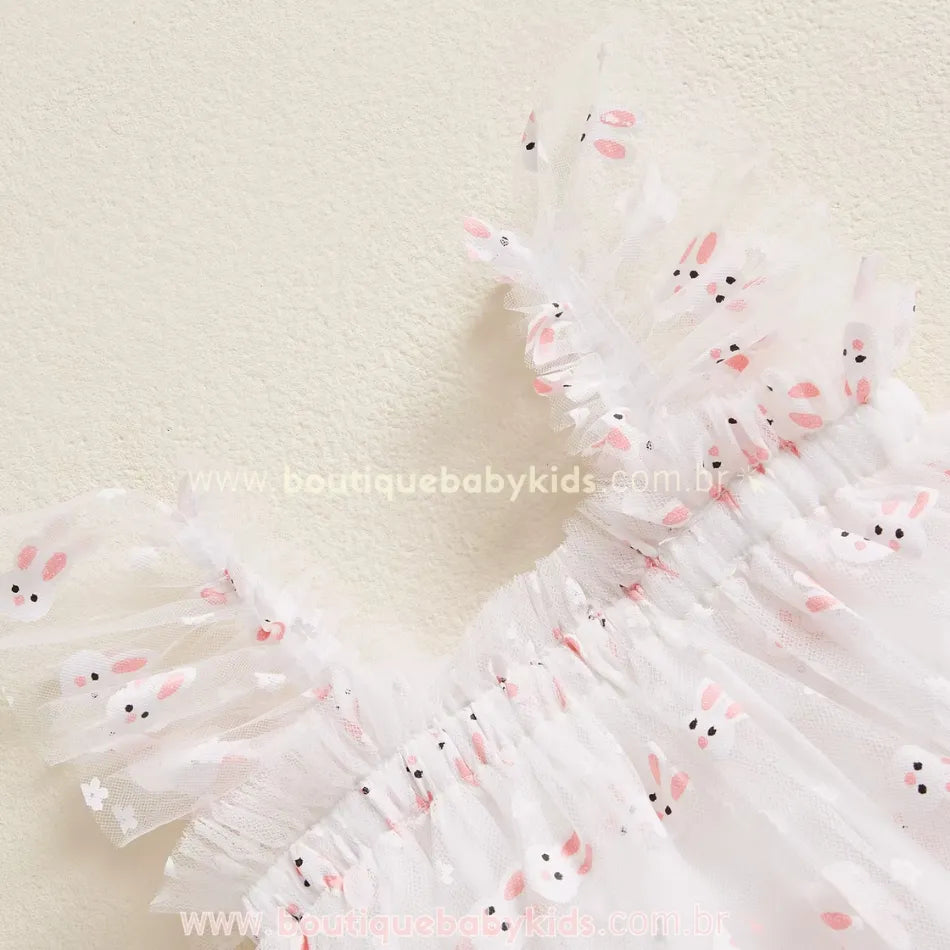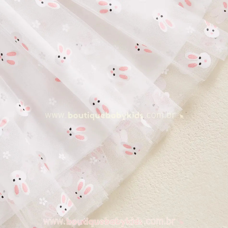 Vestido Infantil Tule Encanto de Coelhinhos