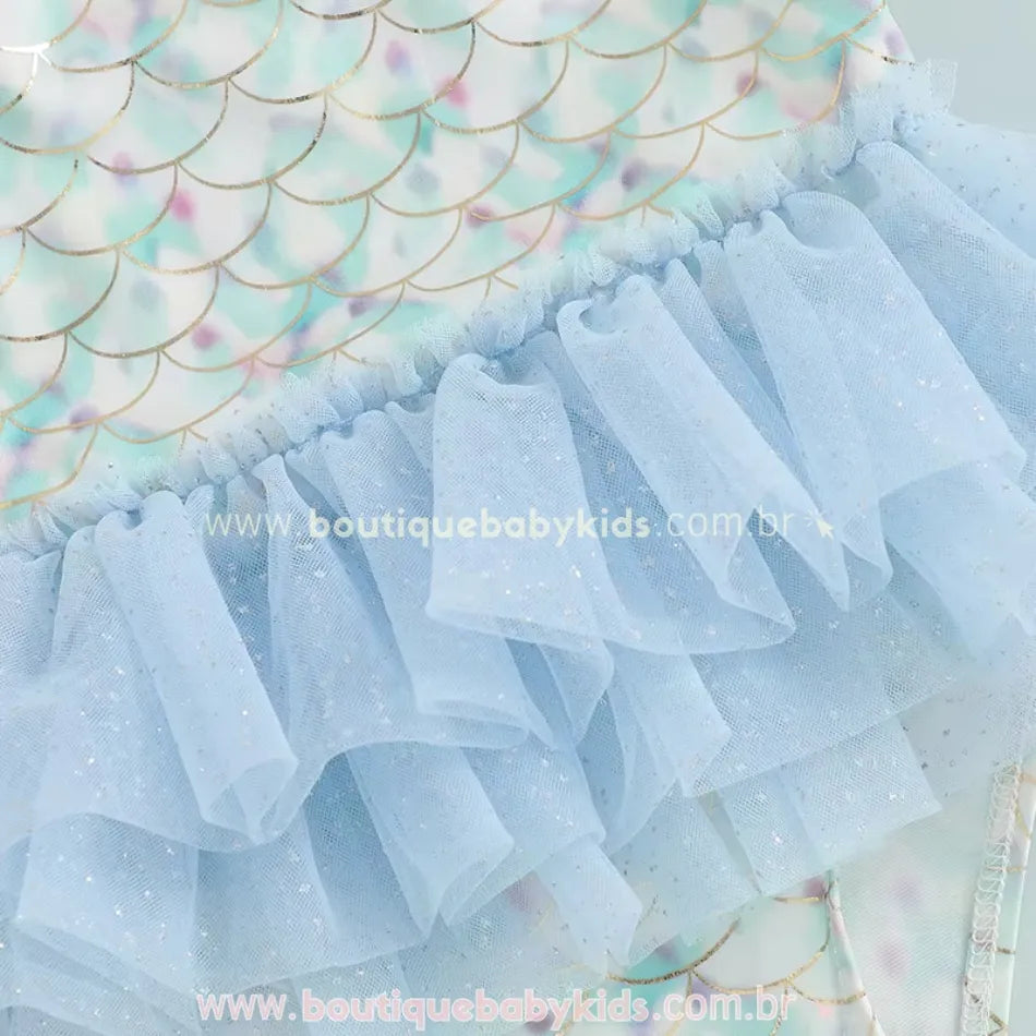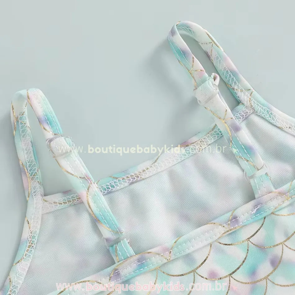 Design Inspirado em Sereias: A estampa de escamas com detalhes dourados traz um visual encantador e delicado.