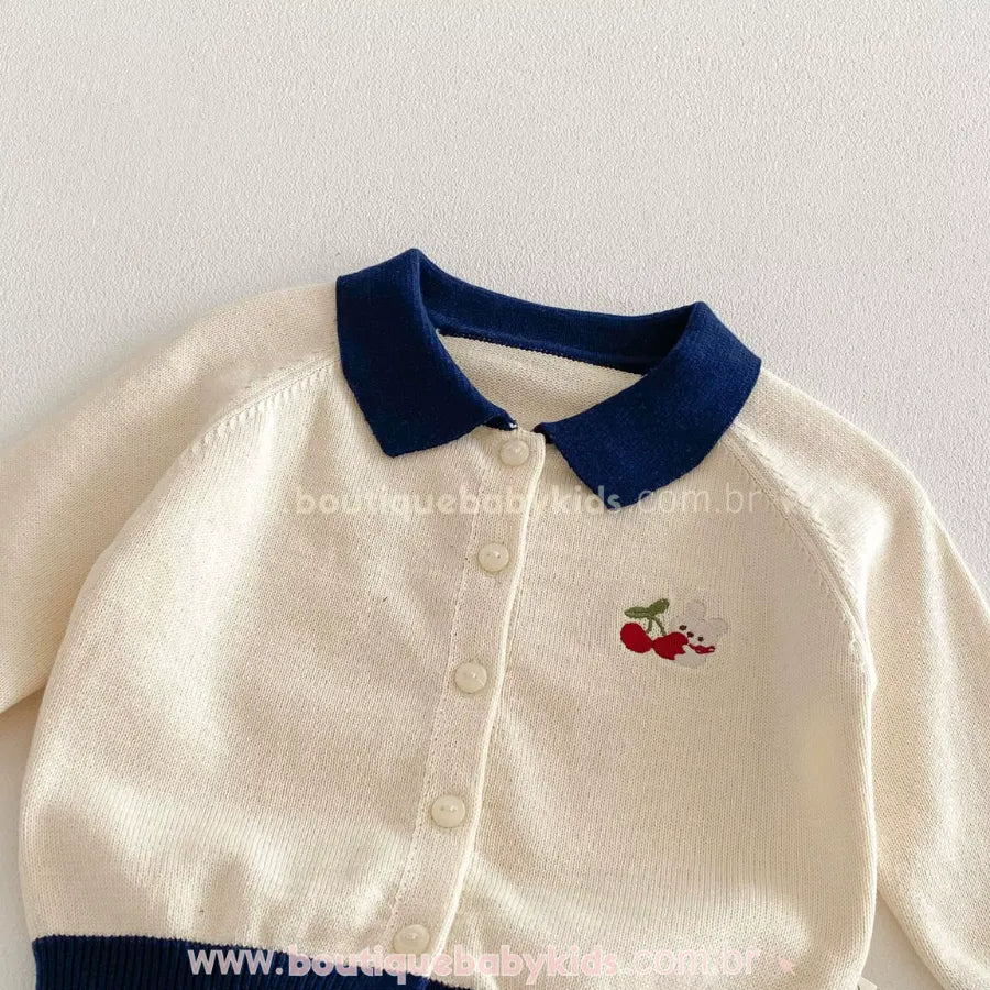 Conjunto Infantil Tricot Bordado Cerejinhas