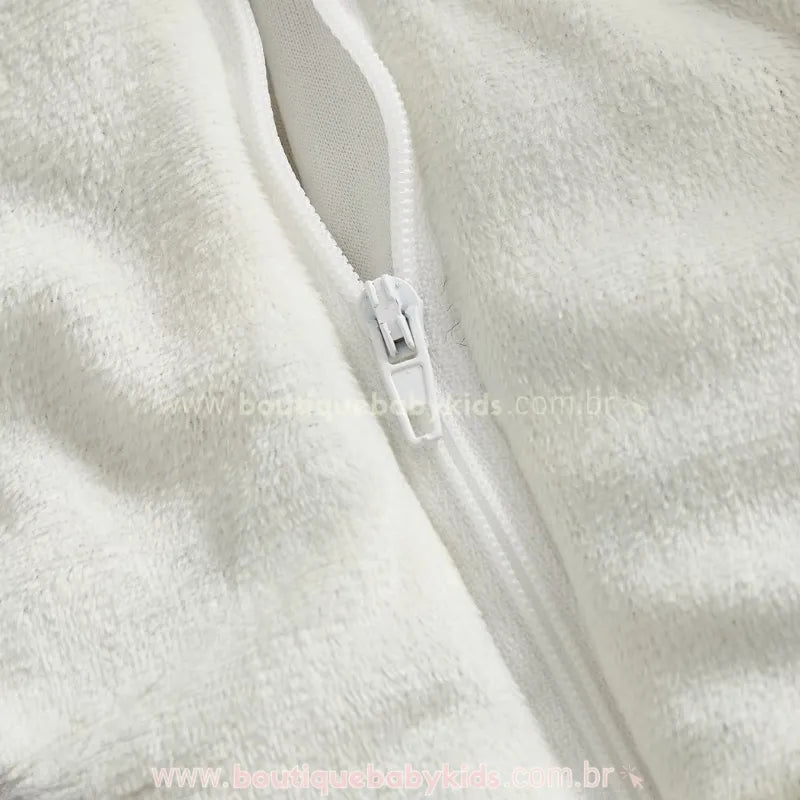 Aconchego nos Dias Frios: O tecido felpudo mantém o corpo aquecido em dias frios, sendo ideal para o outono e inverno. Ao mesmo tempo, é leve o suficiente para o bebê brincar ou dormir com liberdade de movimento.