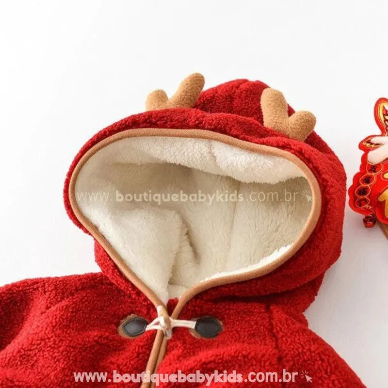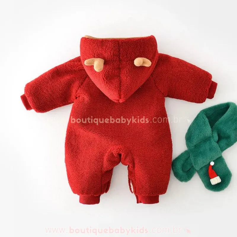 Macacão Bebê Rena do Papai Noel com Cachecol Acolchoado - Boutique Baby Kids