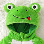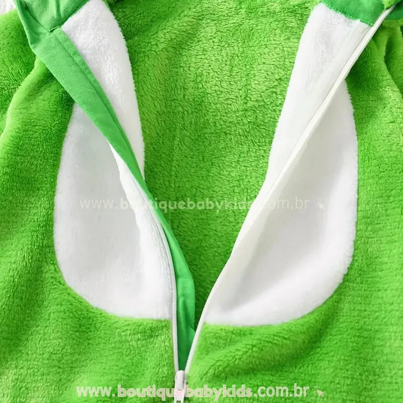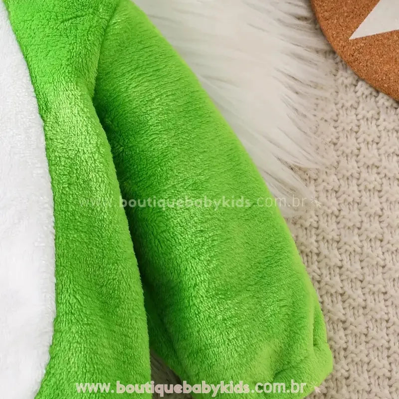 Design Temático de Sapinho: Capuz com olhos saltados em 3D, sorriso bordado e detalhes divertidos que recriam o visual encantador de um sapinho feliz.