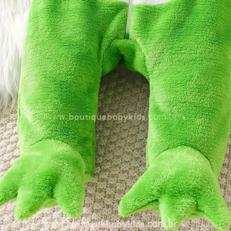 Detalhes Lúdicos nos Pés: Formato de patinhas de sapo em 3D que tornam a peça ainda mais fofa e divertida.