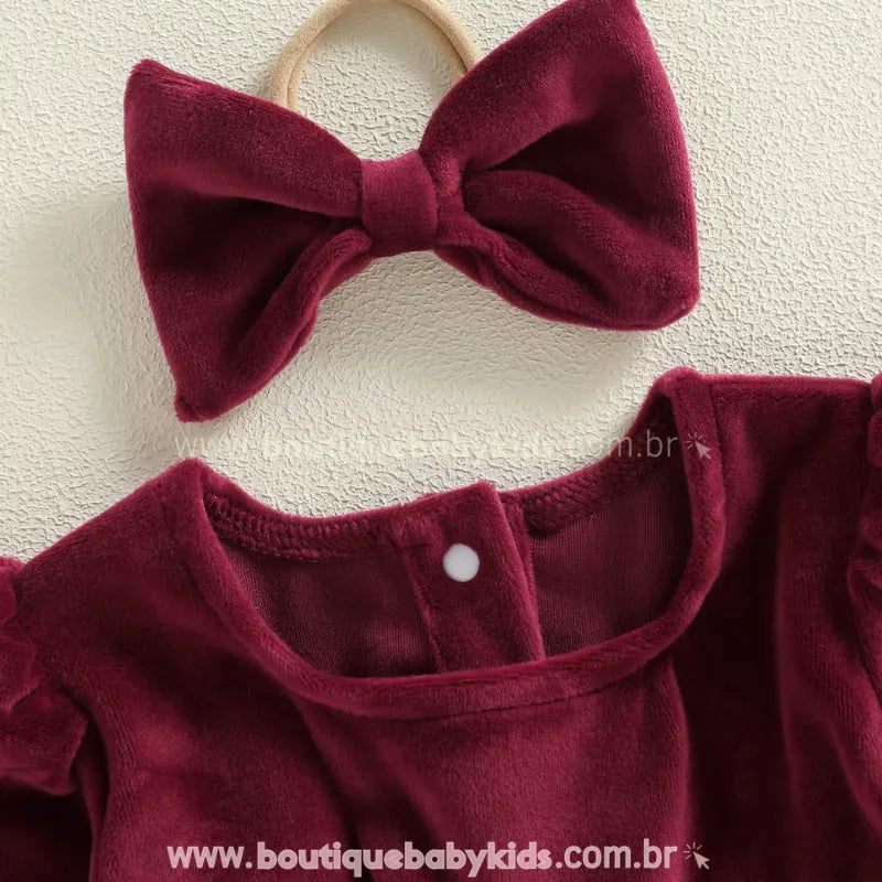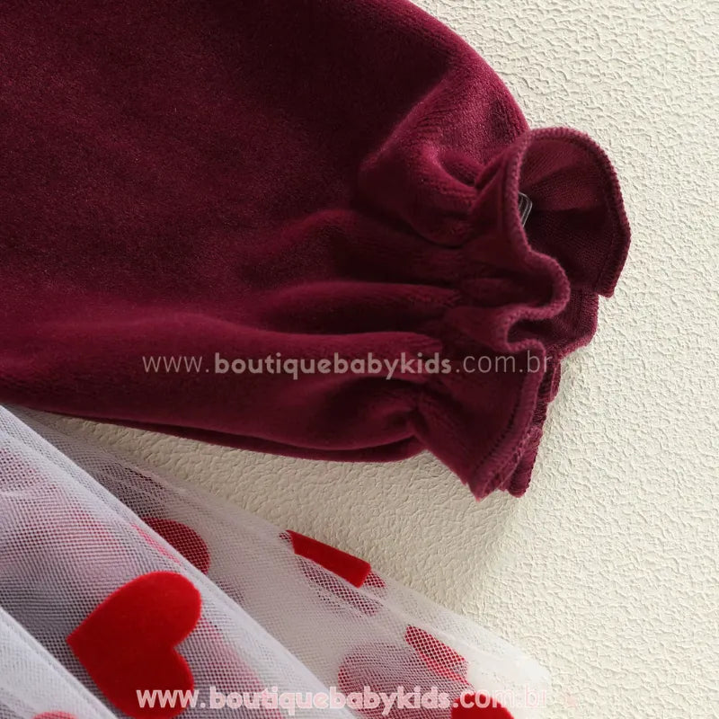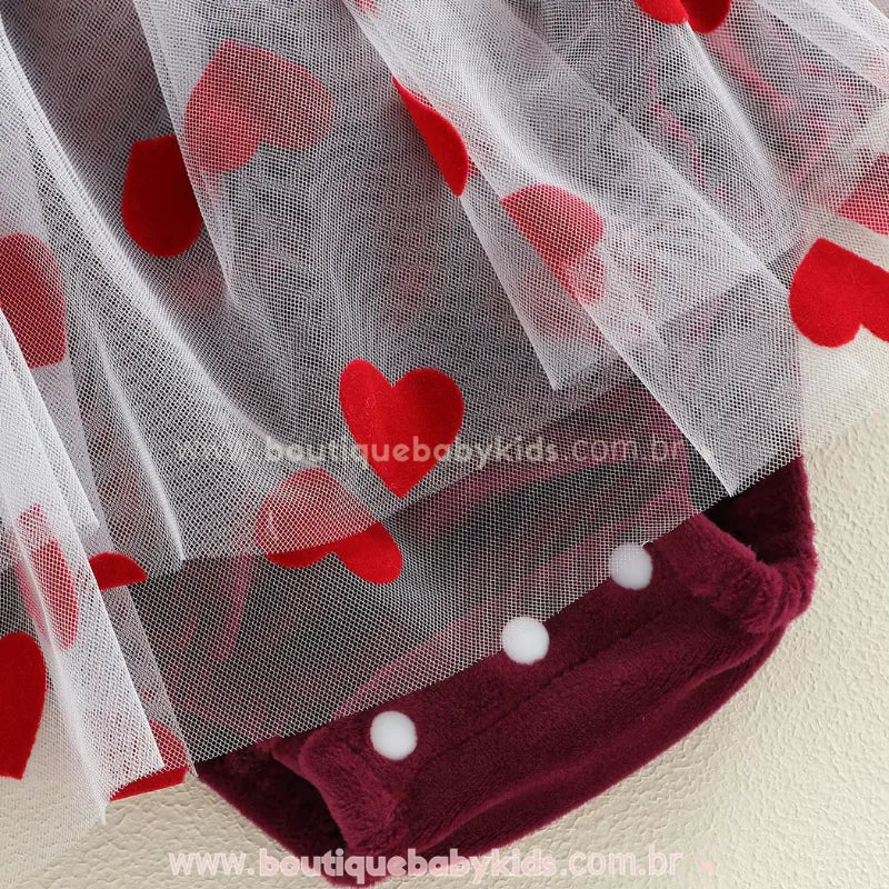 Vestido Bebê Veludo Corações de Amor com Tule e Faixa - Boutique Baby Kids