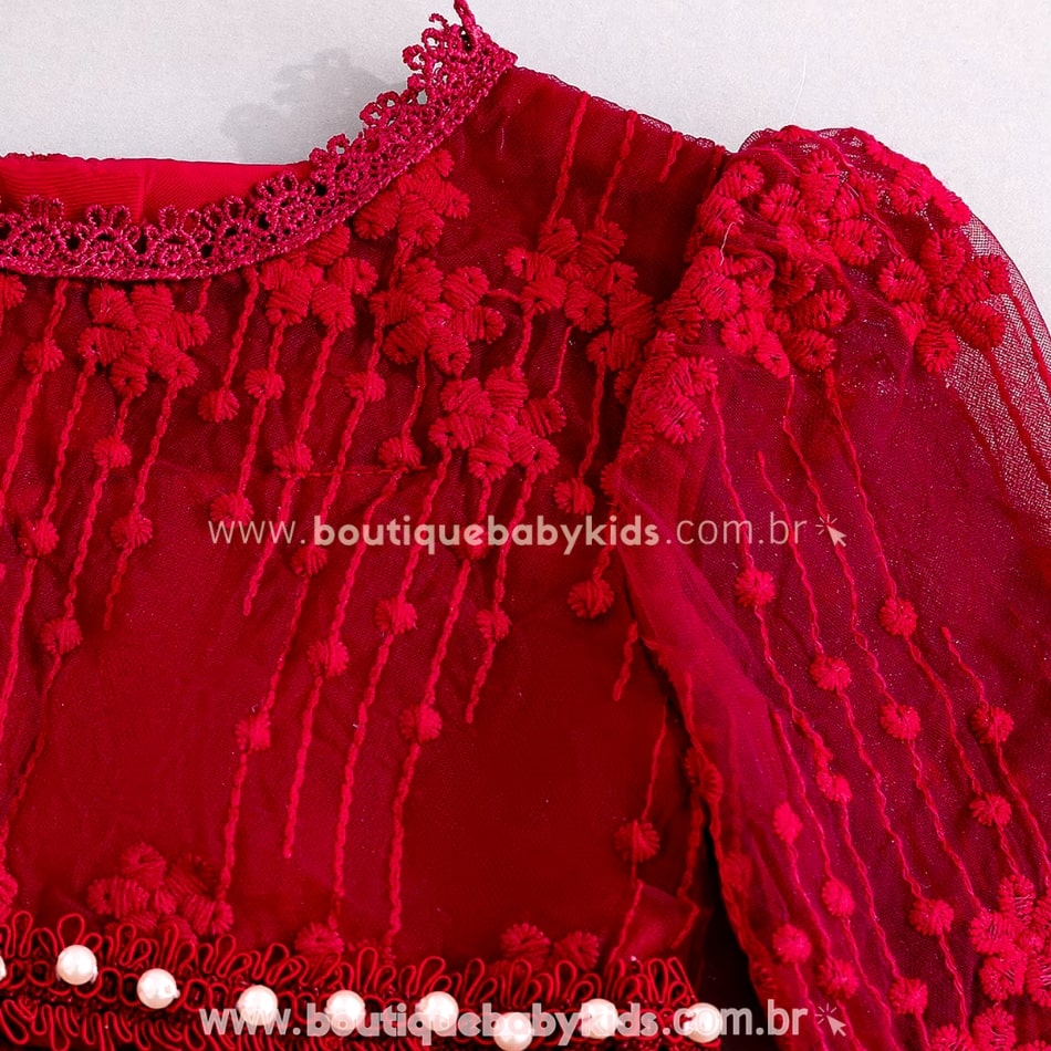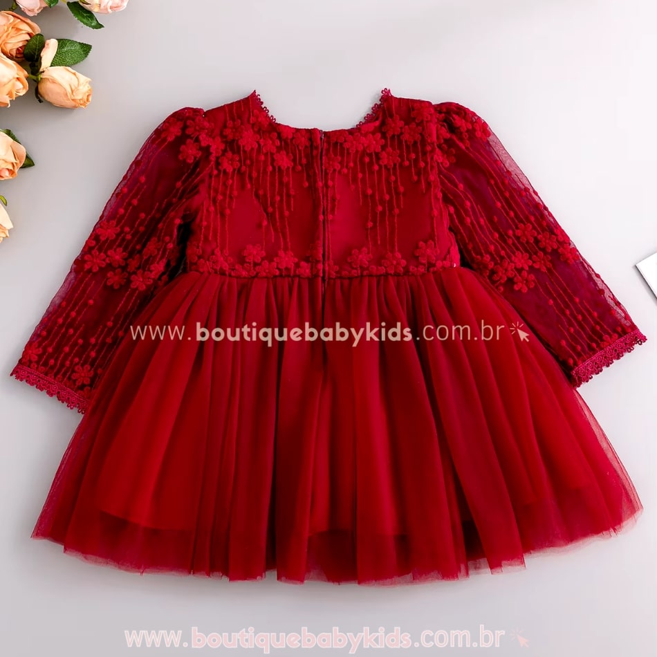 por🌹O Vestido Bebê Renda Bordeaux com Tule é uma peça cheia de elegância e sofisticação, ideal para ocasiões especiais. Combinando a beleza da renda com o volume delicado do tule, esse vestido encanta em cada detalhe.