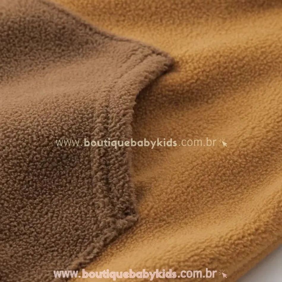 Capuz com Orelhinhas: Capuz exclusivo com bordado do rostinho do Simba e orelhinhas aplicadas que transformam o visual em uma fantasia lúdica e encantadora.