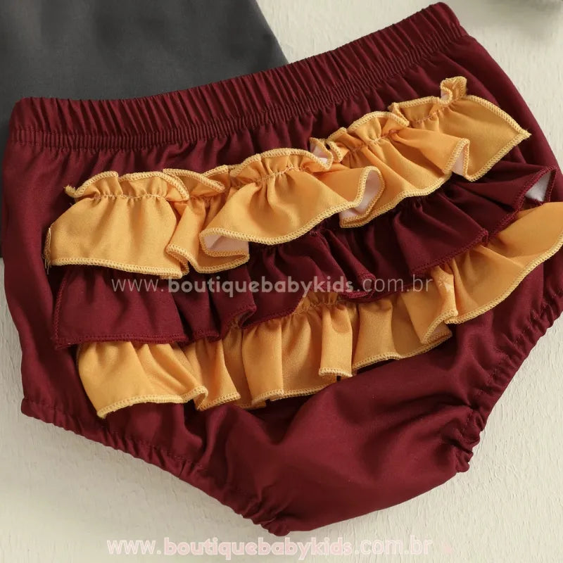 Conjunto Completo: Acompanha blusinha temática e shortinho combinando, formando o look perfeito da pequena bruxinha de Grifinória.