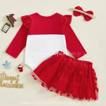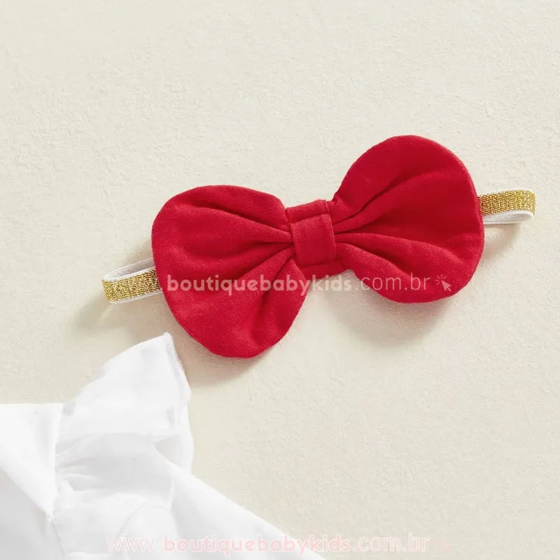Faixa Combinando: Para deixar o visual ainda mais fofo, o conjunto vem com uma faixa de cabelo combinando, perfeita para completar o look natalino da sua pequena estrela.