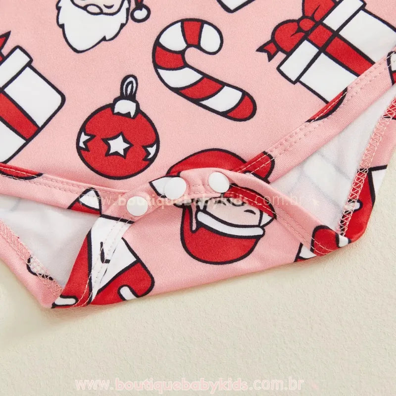 Body Temático de Natal: Body estampado com elementos natalinos como presentes, gorros e sinos, transmitindo toda a magia da data.