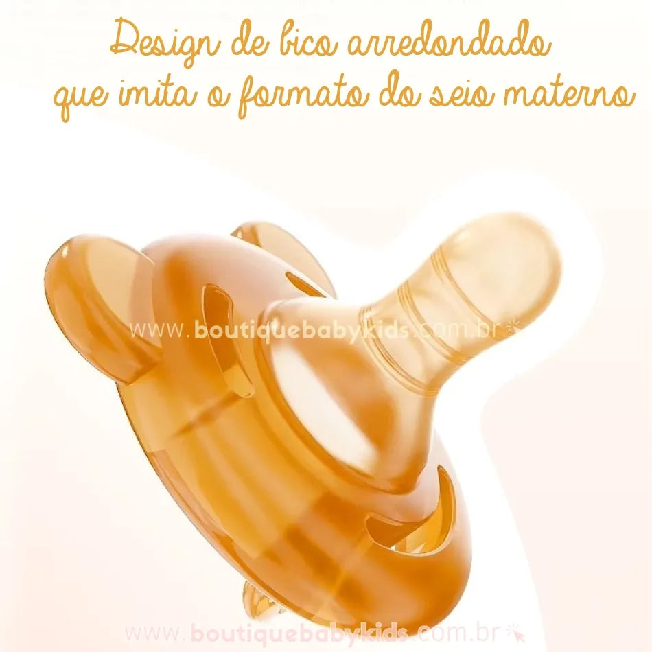 Chupeta Diurna: Possui um bico arredondado que imita o formato do seio materno, promovendo uma experiência de sucção mais natural e confortável para o bebê, além de acalmar nos momentos de atividade.