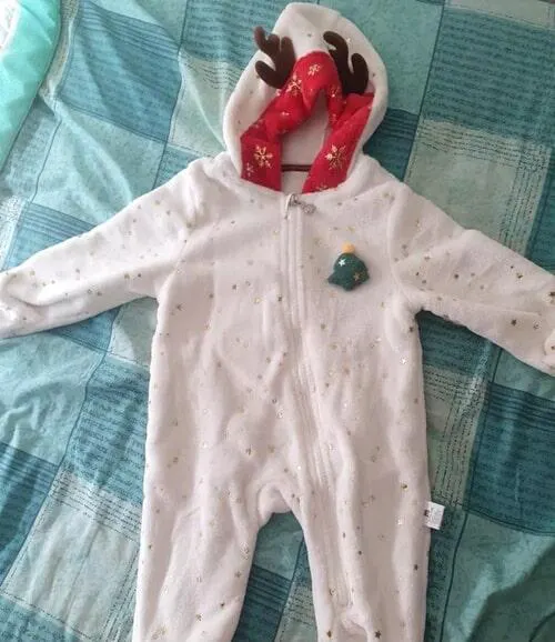 Capuz com Chifrinhos de Rena: O capuz do macacão inclui chifrinhos macios que imitam uma rena, adicionando um toque divertido e especial.