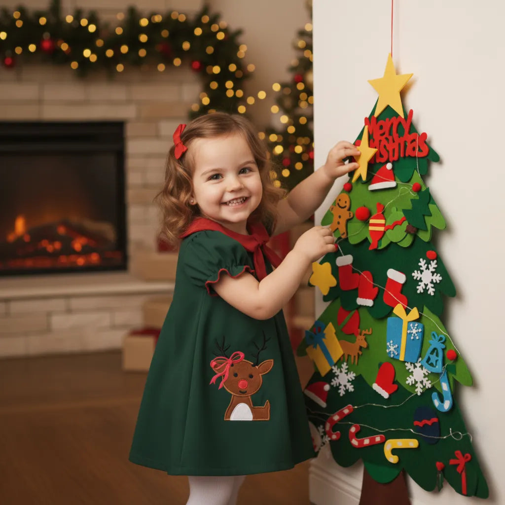 Vestido Bebê Temático Árvore de Natal com Faixa