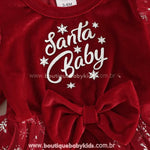 🎄O Body Bebê Veludo 'Santa Baby' com Meia é a escolha perfeita para vestir sua pequena com charme e elegância nas comemorações natalinas! Com um toque macio e brilho delicado, o conjunto traz o espírito do Natal em uma produção doce, confortável e encantadora.