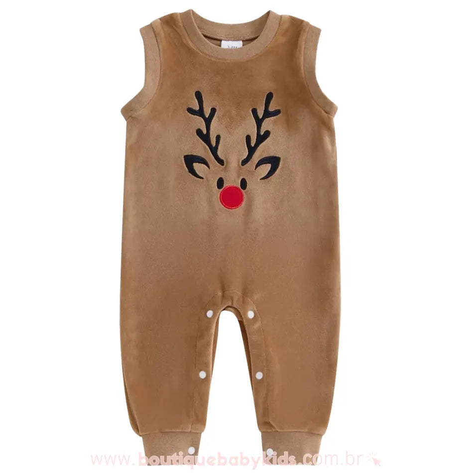 Macacão Bebê Temático Rena de Natal