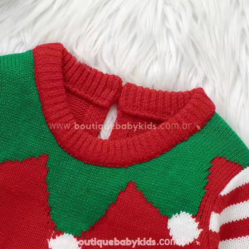 Material Confortável: Confeccionado em tricot macio, garantindo liberdade de movimento e conforto térmico. Ideal para manter o bebê quentinho e estiloso durante as comemorações natalinas.