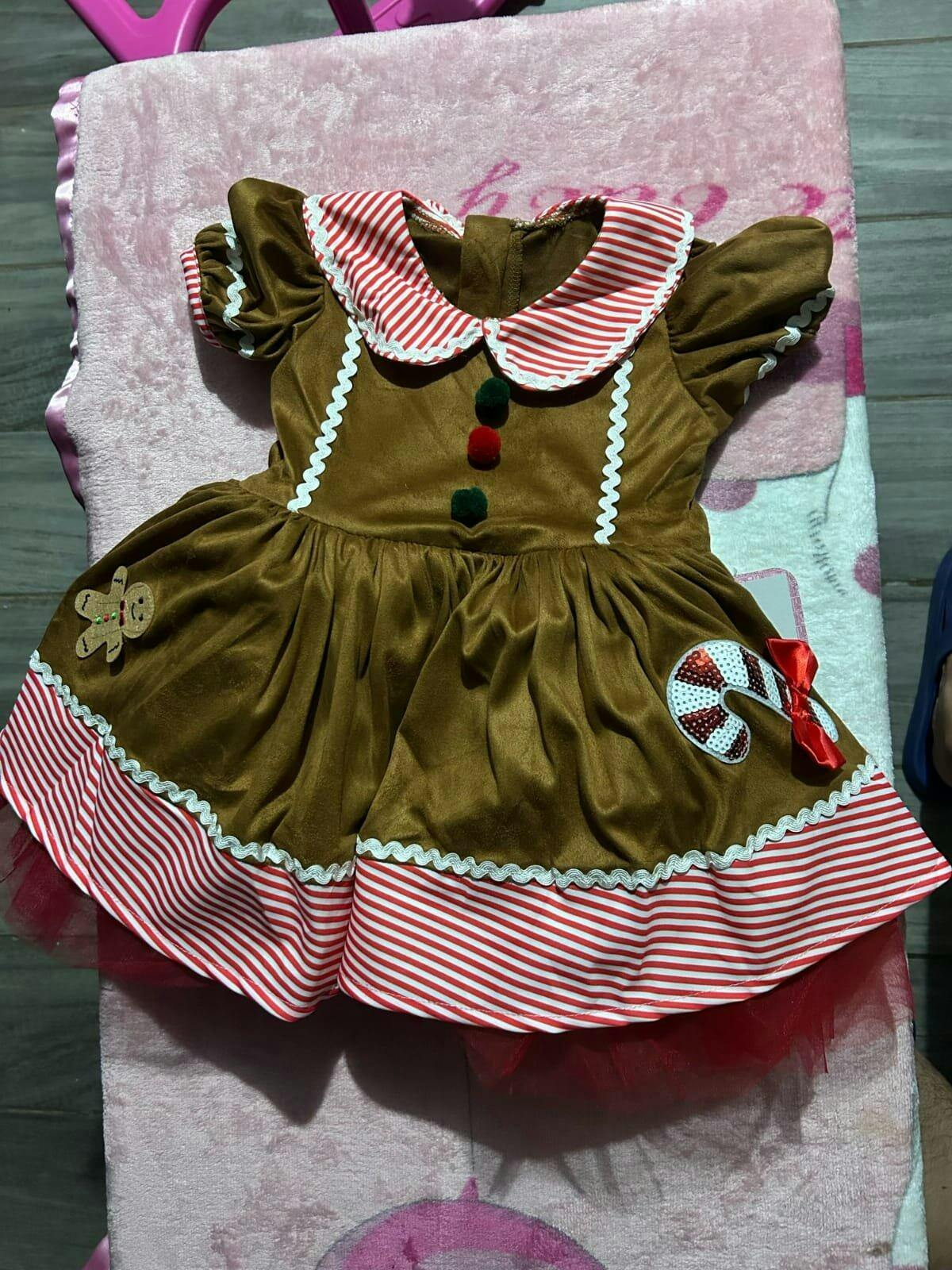🍪O Vestido Infantil Biscoitinho de Gengibre é pura doçura natalina! Inspirado nos clássicos biscoitos de gengibre que trazem o sabor e o encanto do Natal, ele transforma qualquer momento em uma celebração cheia de magia, alegria e muito estilo. Perfeito para festas, fotos e momentos especiais em família!
