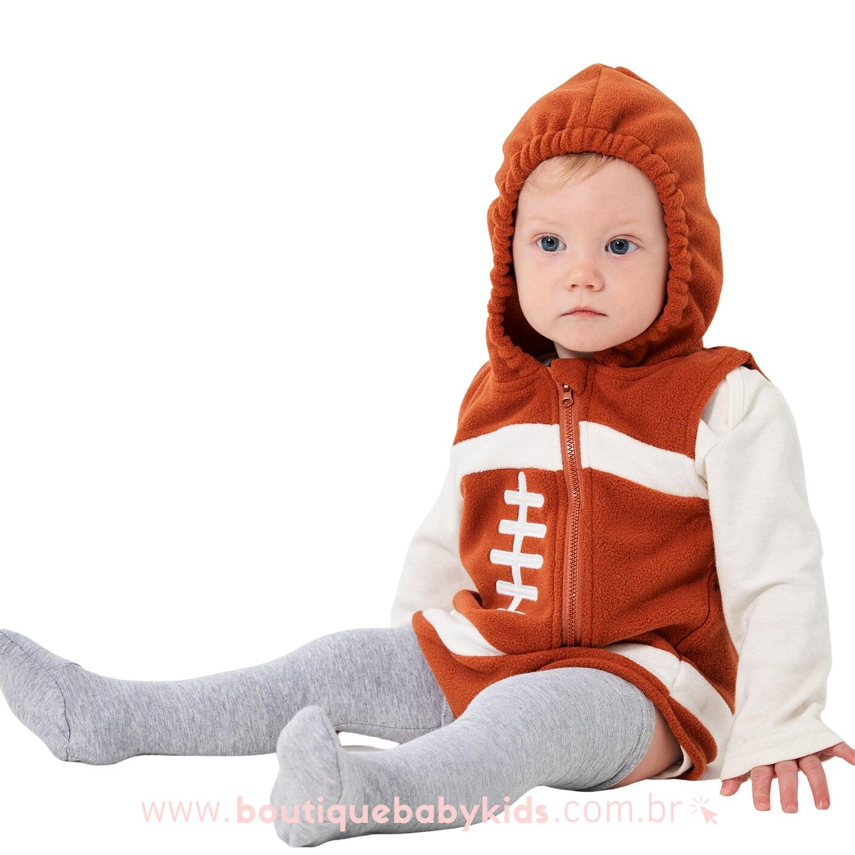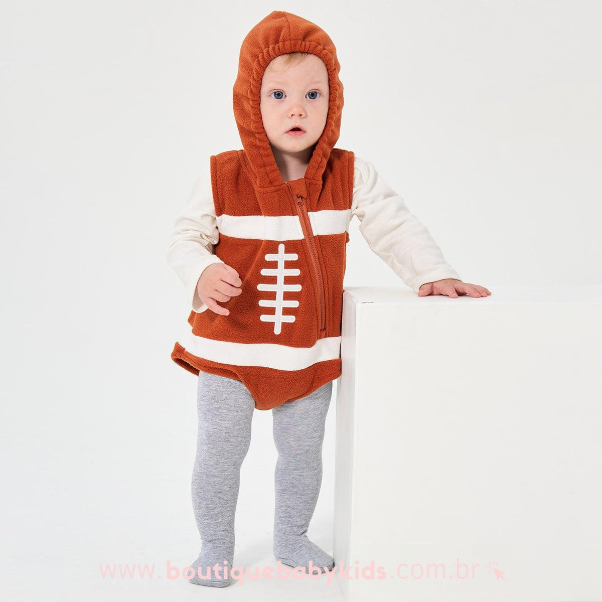 Body Bebê Fantasia Bola Futebol Americano com Meia