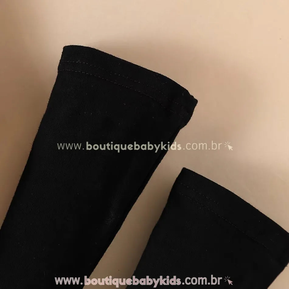Conjunto Completo: Inclui uma meia preta longa e macia que complementa o tema, garantindo ainda mais estilo ao look.
