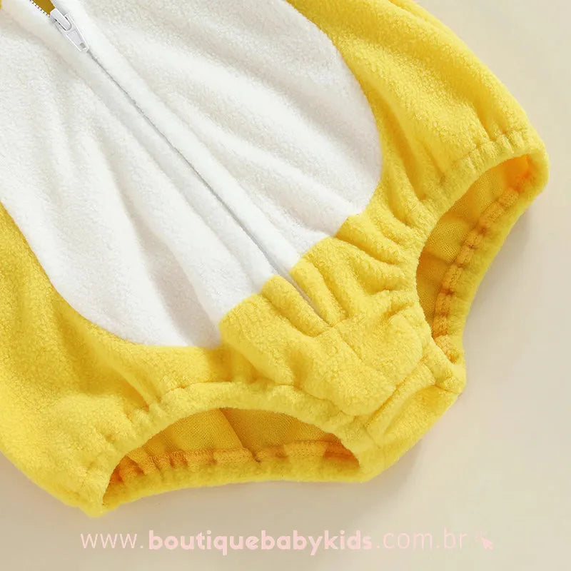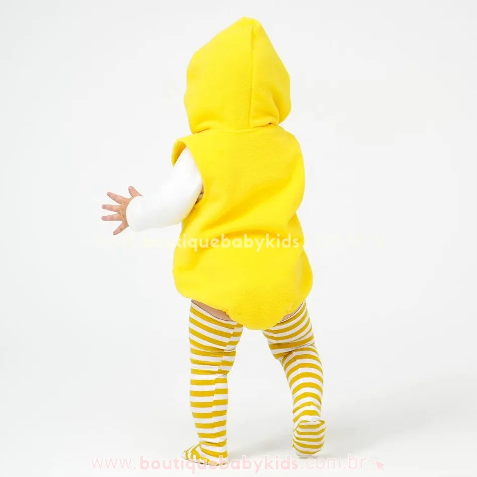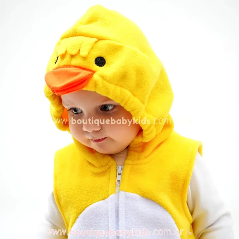 Design Temático: Inspirado no tema de pintinho, com detalhes encantadores como a barriguinha branca e o capuz com olhinhos e biquinho.