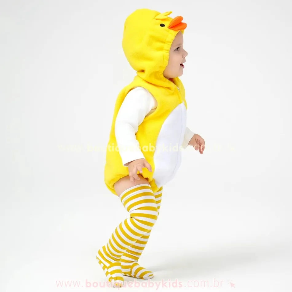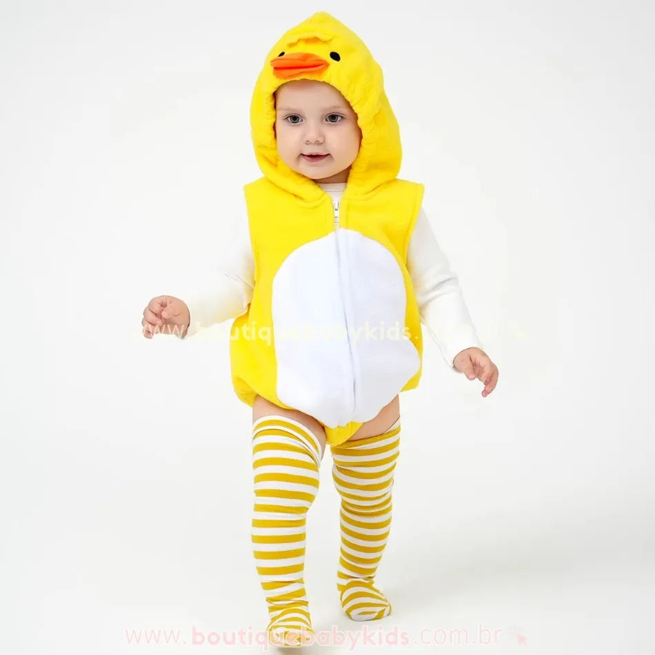 por🐥O Body Bebê Fantasia Pintinho com Meia é perfeito para deixar os pequenos ainda mais adoráveis e confortáveis! Inspirado no tema de pintinho, este body amarelo traz uma barriguinha branca que dá um toque especial de fofura. A peça conta com um capuz temático que possui olhinhos delicados e um charmoso biquinho, completando o visual de forma encantadora.