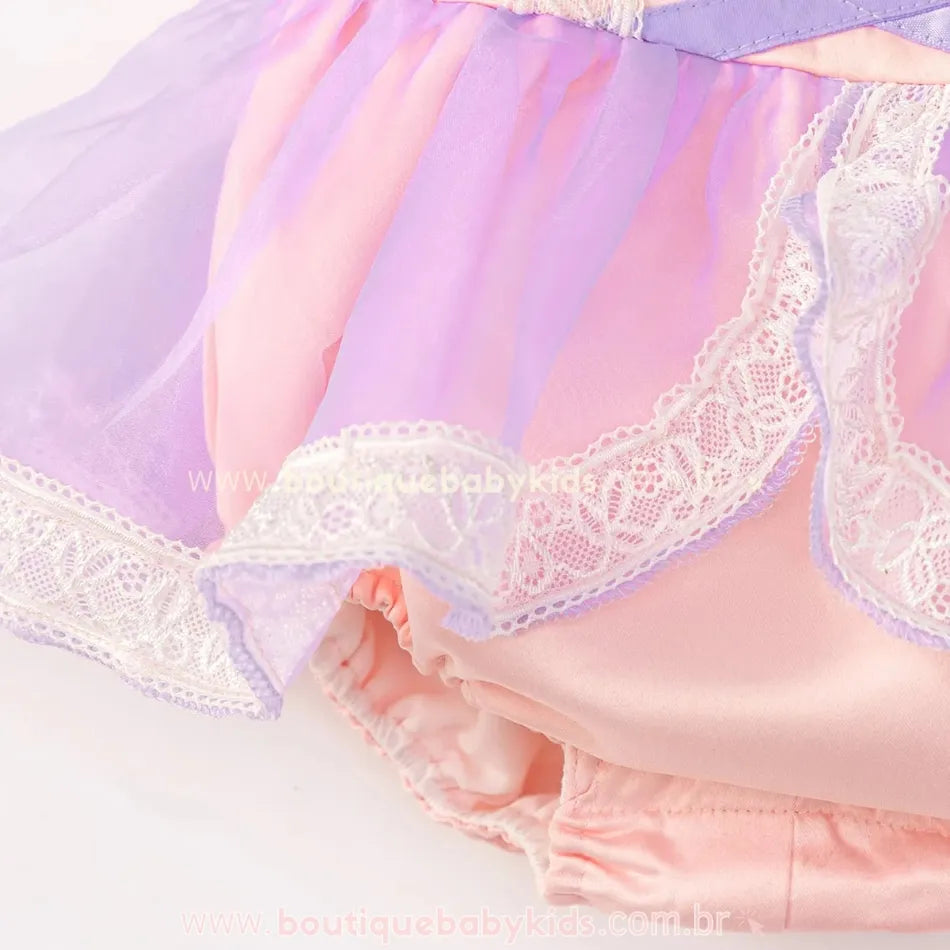 por👑Encante-se com o delicado Body Bebê Fantasia Princesa Aurora, inspirado no conto de fadas que é sinônimo de magia e beleza. Este body foi especialmente desenhado para que a sua pequena se sinta uma verdadeira princesa, com detalhes encantadores que remetem ao clássico visual da Princesa Aurora.