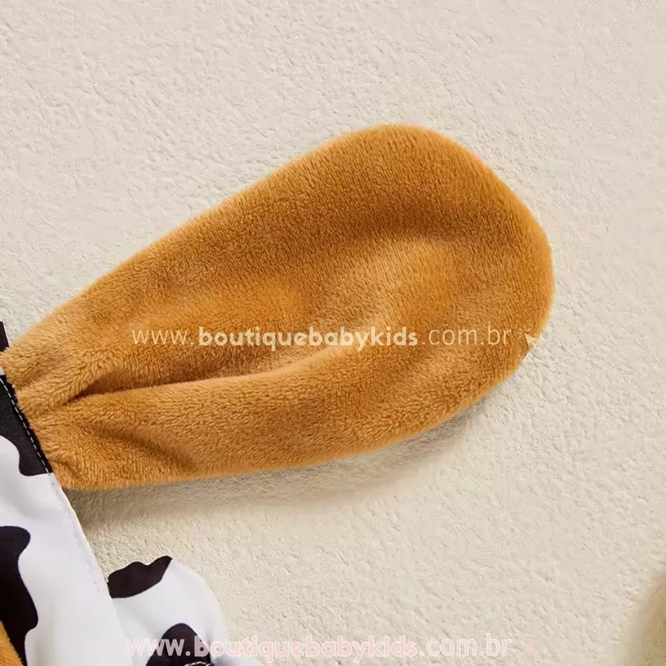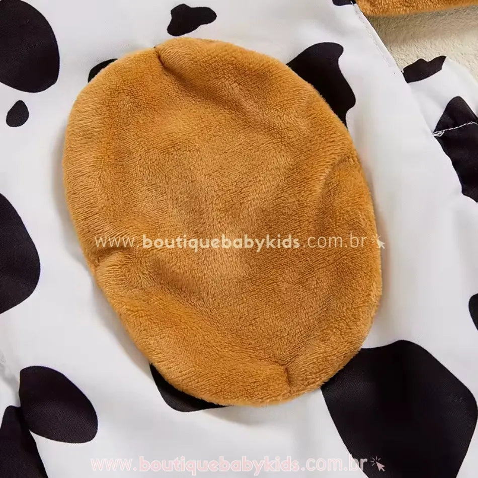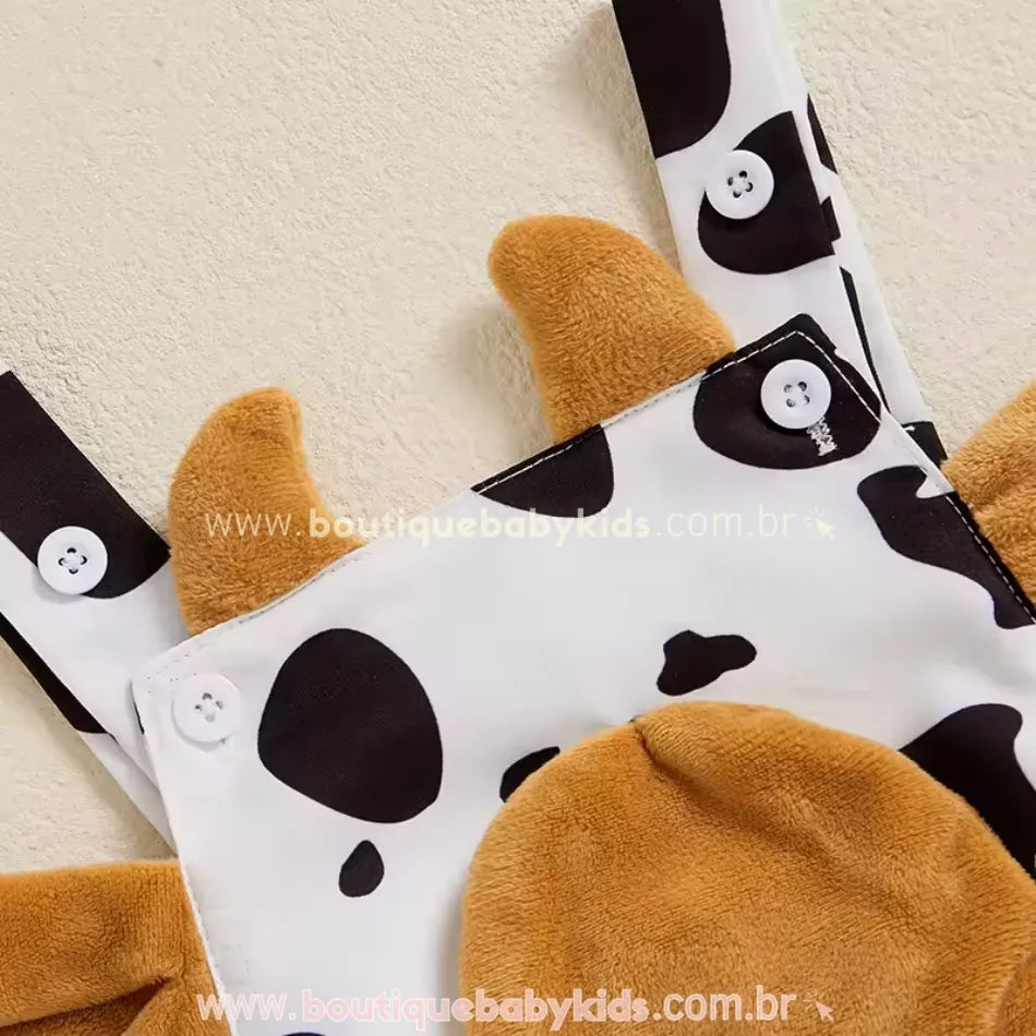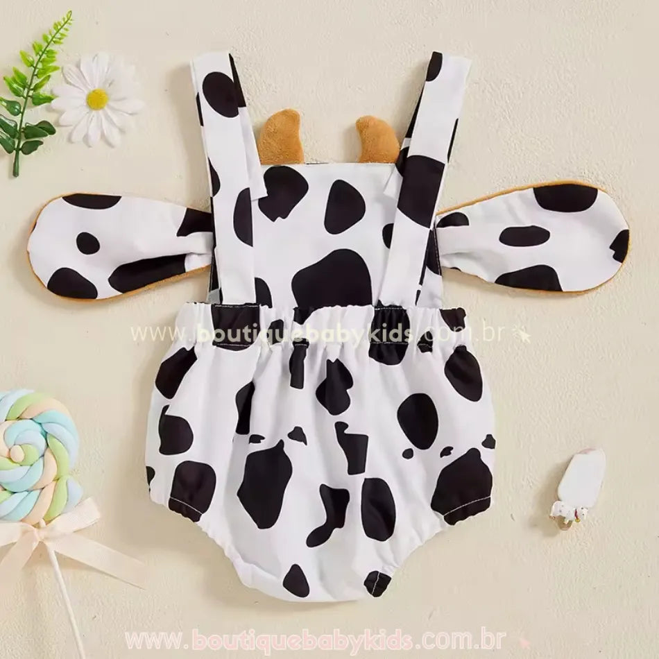 Body Bebê Jardineira Temática Vaquinha Orelhuda