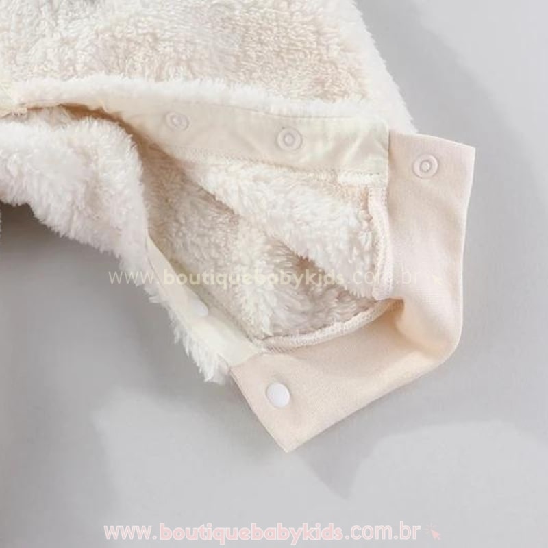 Mangas Longas: Com mangas longas e punhos e tornozelos elásticos, oferece proteção adicional contra o frio, mantendo o bebê aquecido e confortável em dias mais frescos.