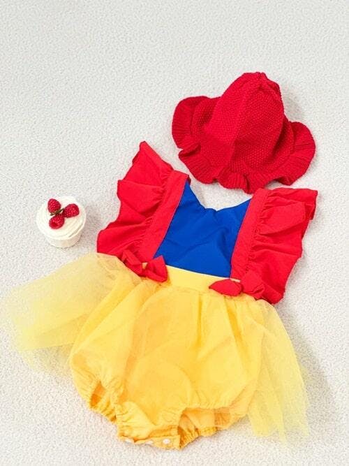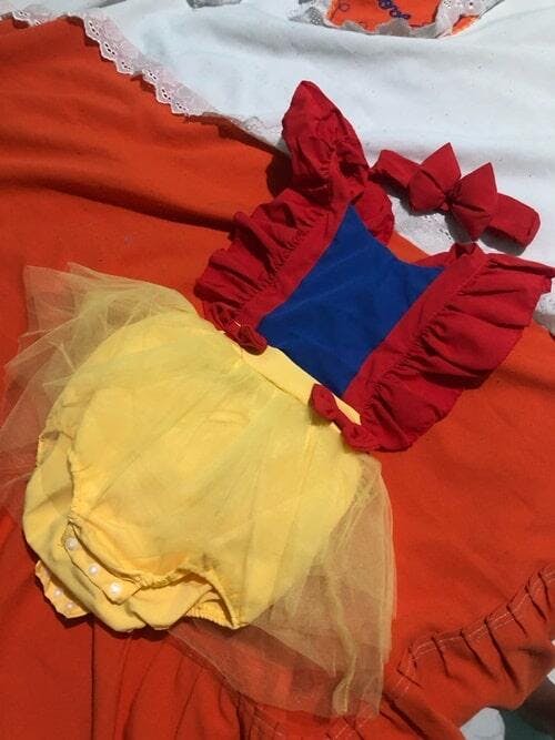 🍎O Body Bebê Fantasia Branca de Neve transformará sua pequena em uma princesa encantadora. Perfeito para sessões de fotos, festas temáticas ou simplesmente para adicionar um pouco de encanto ao dia a dia.