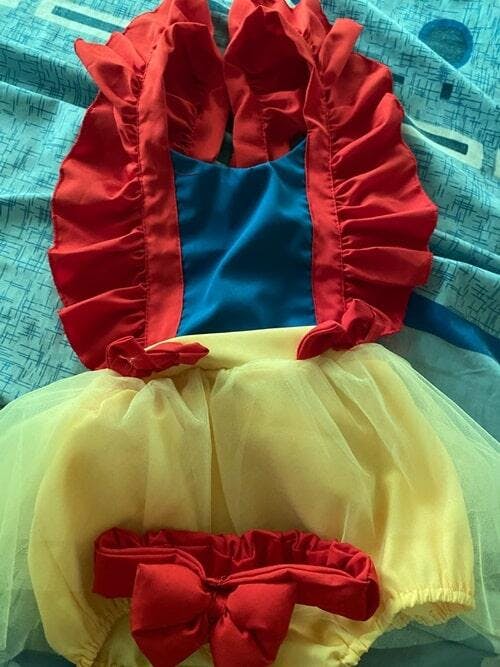 Saia Tule Amarela: Este body possui uma saia embutida de tule, que acrescenta um toque de elegância e fantasia ao visual da sua pequena princesa criando um efeito encantador que complementa perfeitamente o design inspirado na Branca de Neve.