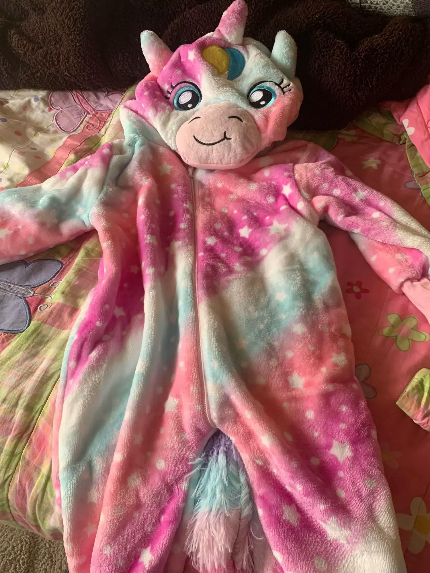 🦄 Macacão confeccionado em material encorpado e macio com aspecto de pelinho, muito quentinho. O modelo é acolchoado, tem fechamento em zíper e capuz com orelhinhas.