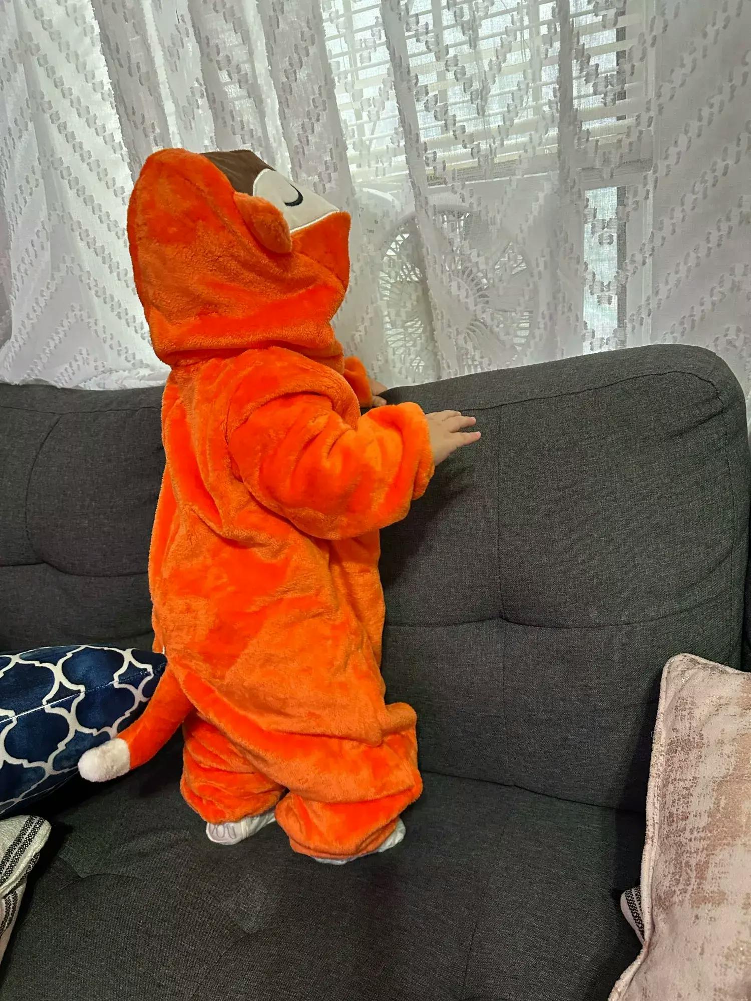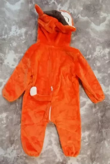 Design Divertido: Inspirado em uma raposinha charmosa, o macacão apresenta uma cor vibrante e detalhes como as orelhinhas e a cauda desse animal encantador.