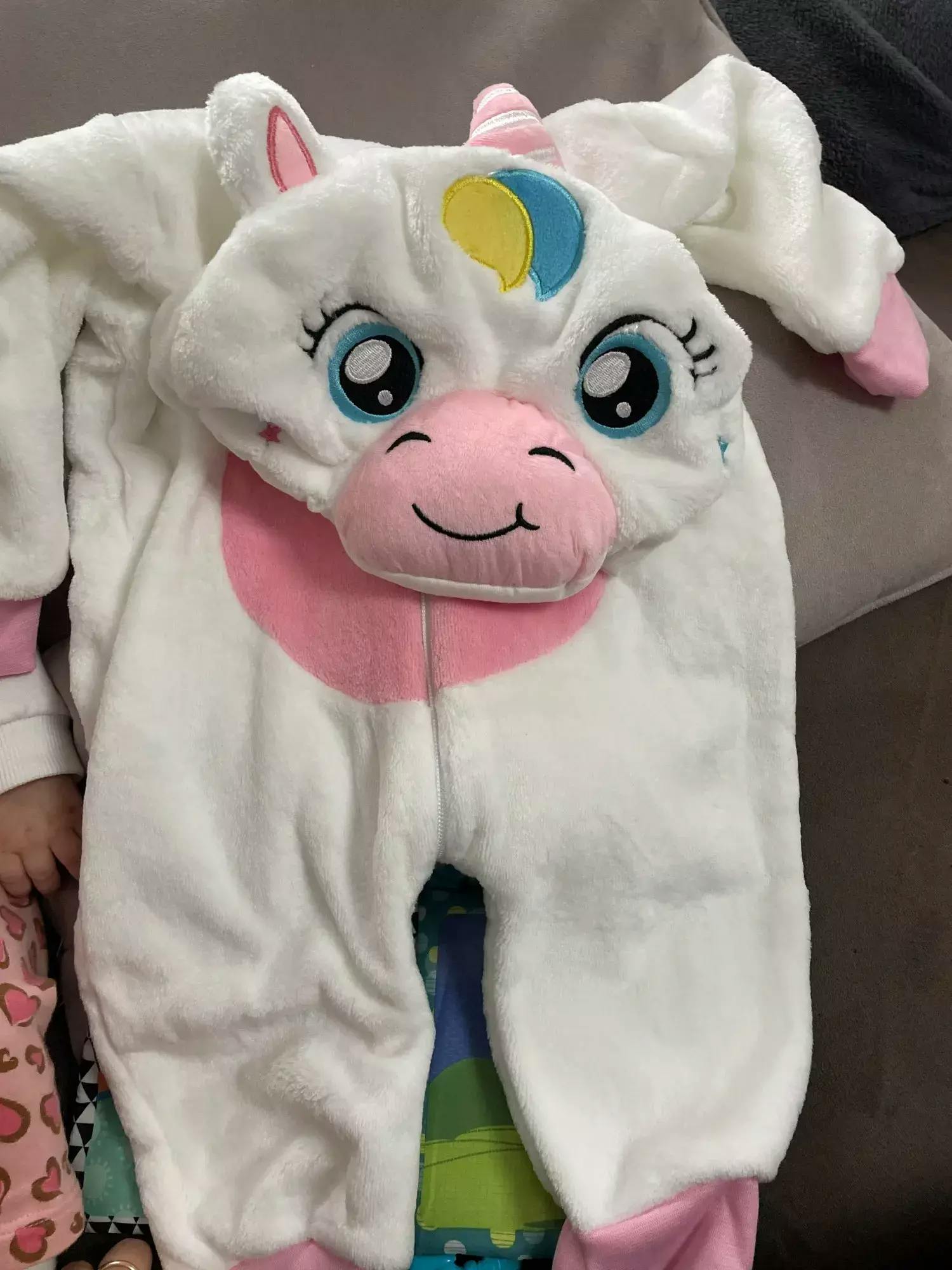🦄 Macacão confeccionado em material encorpado e macio com aspecto de pelinho, muito quentinho. O modelo é acolchoado, tem fechamento em zíper e capuz com orelhinhas.