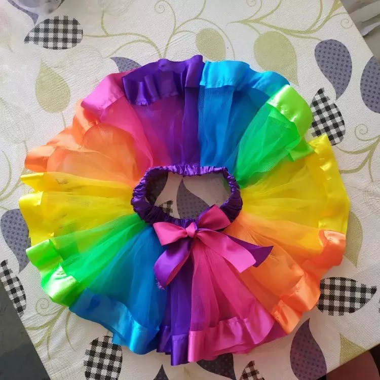 🌈Essa saia se destaca por suas cores vibrantes. O cós é em elástico com detalhe de laço frontal. Sua menina estará pronta para curtir o passeio com a mamãe!