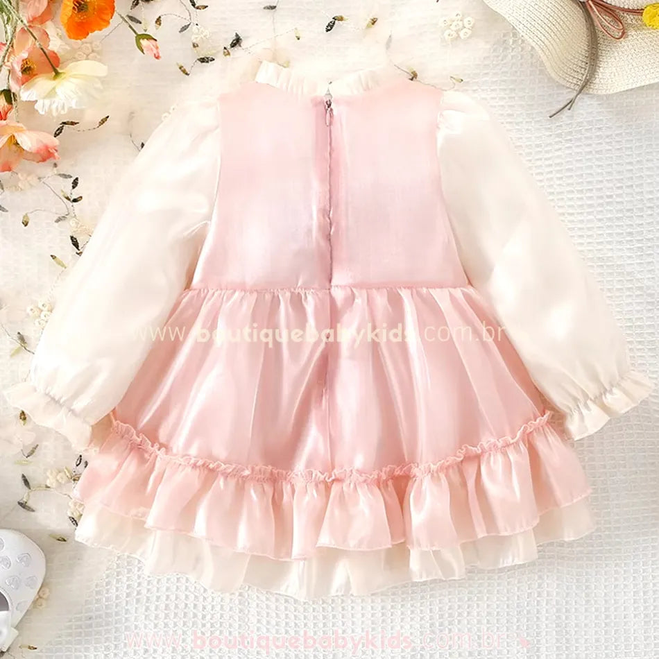 Ideal para Ocasiões Especiais: Seja para festas, ensaios fotográficos ou encontros em família, este vestido garante que sua pequena seja o centro das atenções.