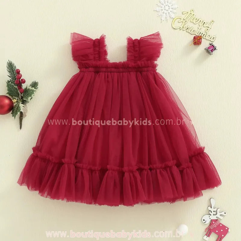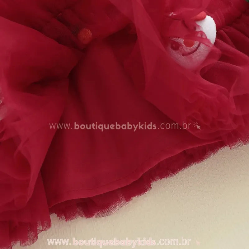 Saia Volumosa em Tule: Camadas de tule esvoaçante que criam um visual cheio de movimento e charme, perfeito para um look de princesa natalina.