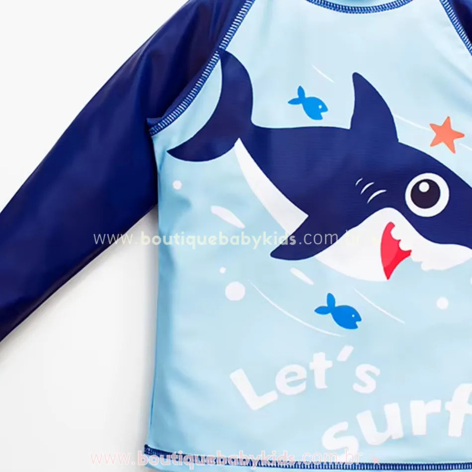 Conjunto de Praia Infantil Tubarão Surfista com Chapéu