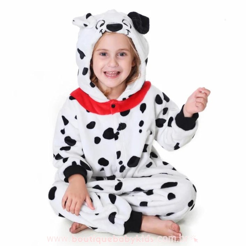 Design Encantador: Design inspirado nos adoráveis dálmatas com manchas características, capuz com orelhinhas e focinho bordado, além de uma cauda.
