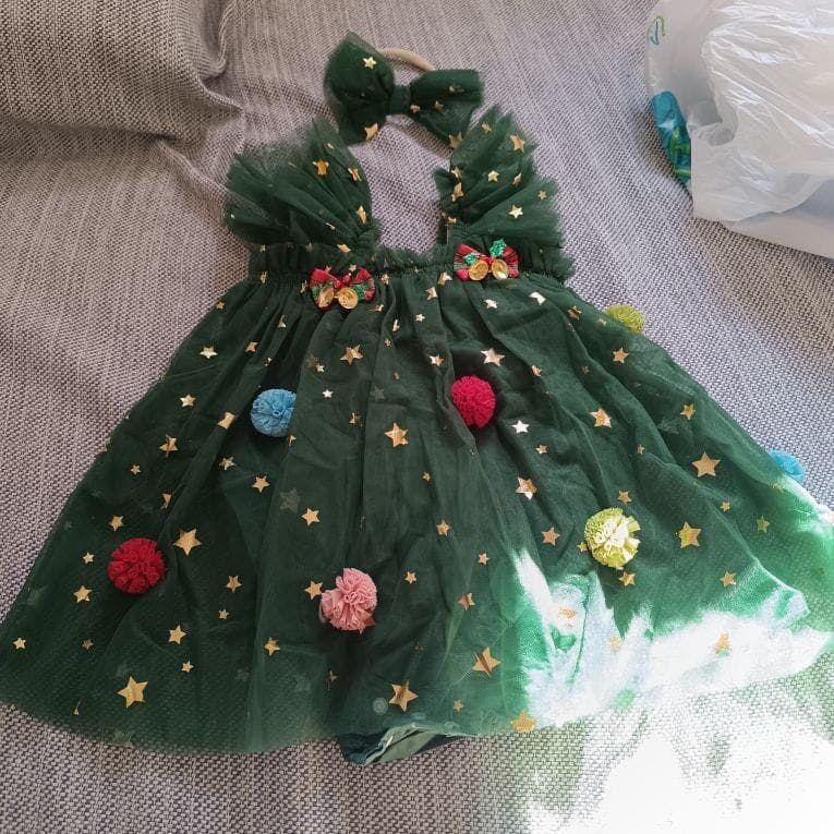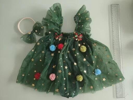 🎄O Vestido Bebê Temático Árvore de Natal com Faixa é a escolha perfeita para transformar sua pequena em uma verdadeira árvore natalina viva, cheia de charme e encanto. Com detalhes adoráveis como pompons coloridos e estrelas douradas, o vestido traz a magia do Natal para o visual de sua bebê.