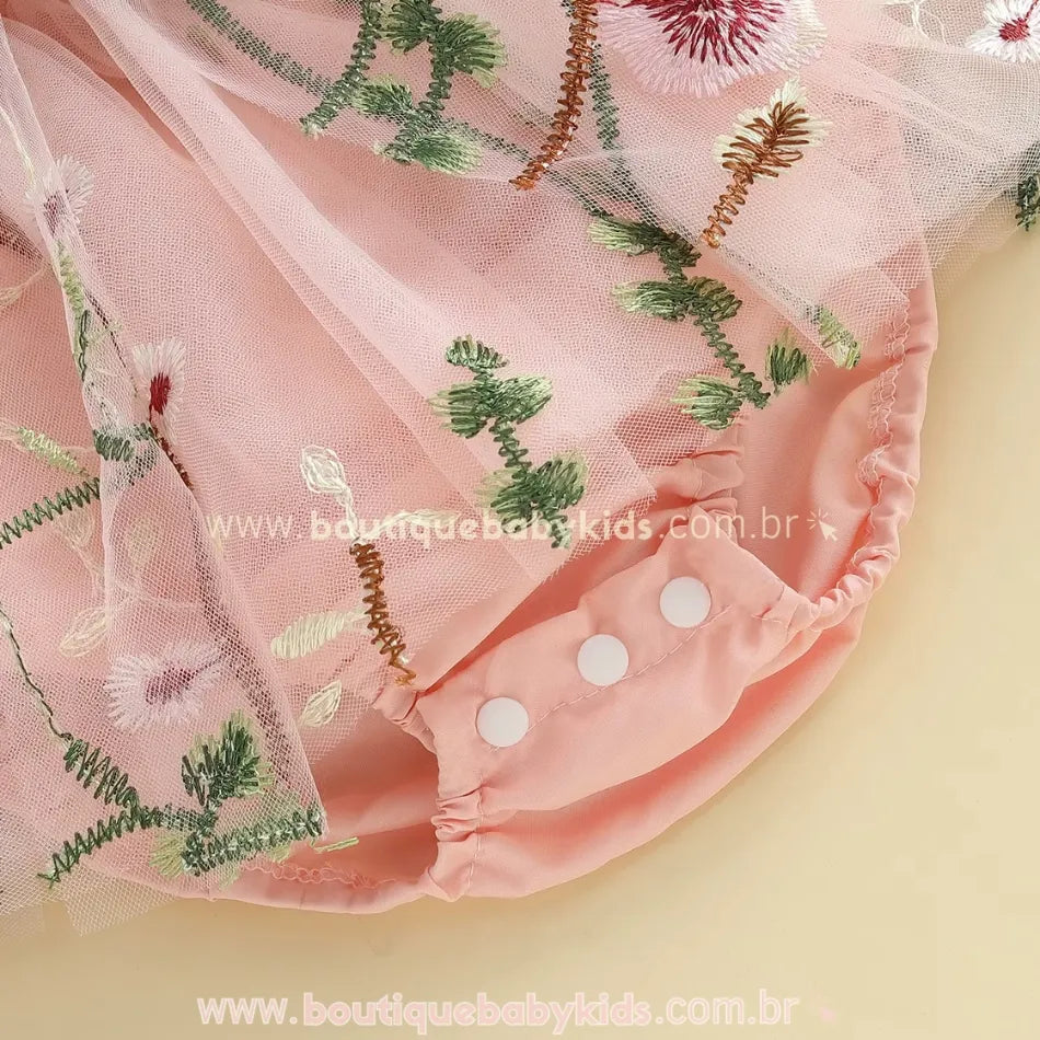 Design Encantador: O vestido possui um design único que combina vestido e body em uma peça só, garantindo praticidade para os pais e conforto para o bebê.